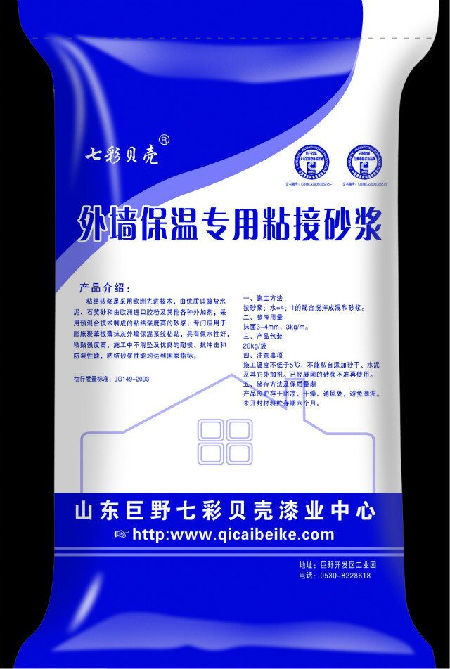 外保溫系統砂漿是一種聚合物增強的水泥基預配制干混柔性粘結砂漿。它是以水泥、石英砂、聚合物膠粘料配以多種添加劑混合機均混而成,和摻入 傳統建筑膠的砂漿相比具有柔韌性和粘結性能,以及良好的抗下垂性、保水性、耐水性以及簡單方便的可操作性,增強了基材與EPS保溫板之間的粘結強 度,增強了拉伸強度,防止空鼓。直接加水,施工方便,操作簡單,工效高。無毒、無嗅、不燃、不傷人體,不含揮發性溶劑。